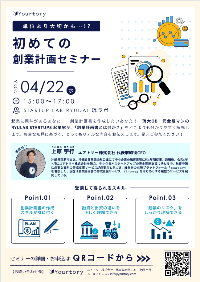 琉大OB・元金融マンのRYULABSTARTUPS起業家が、「創業計画書とは何か?」を