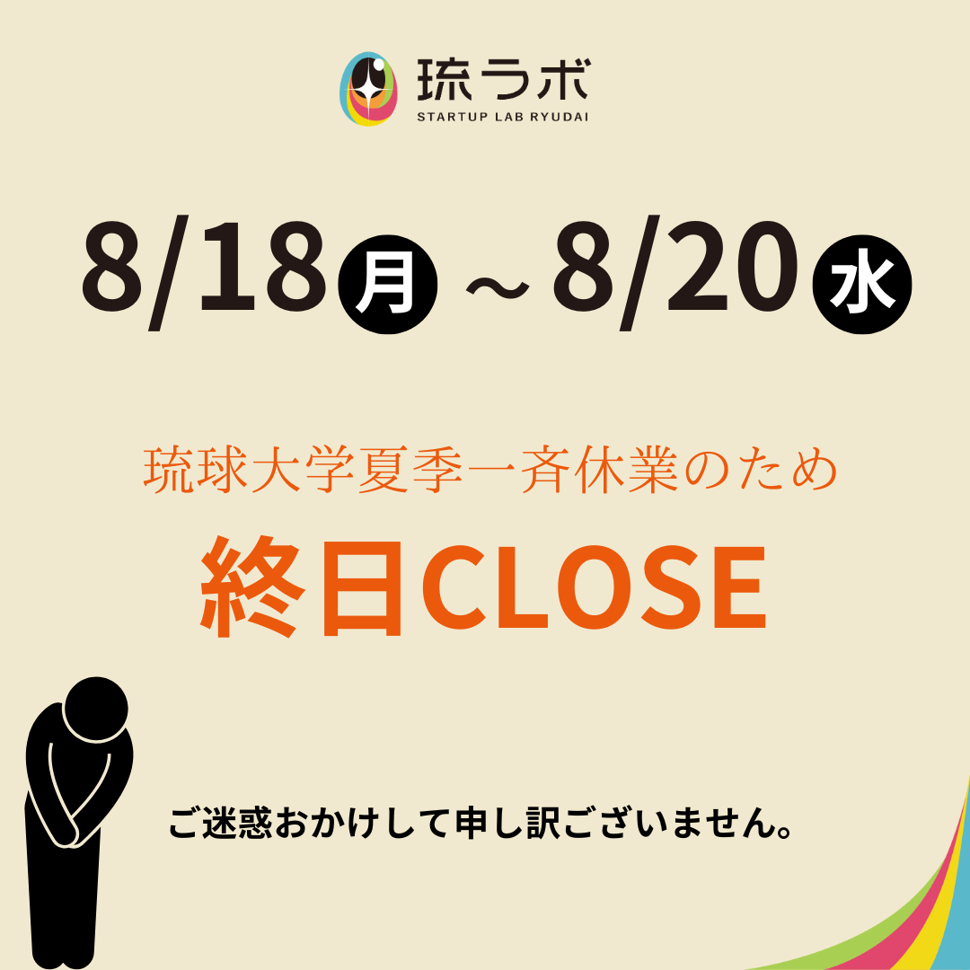 8/18(月)~8/20(水)は琉球大学夏季一斉休業のため